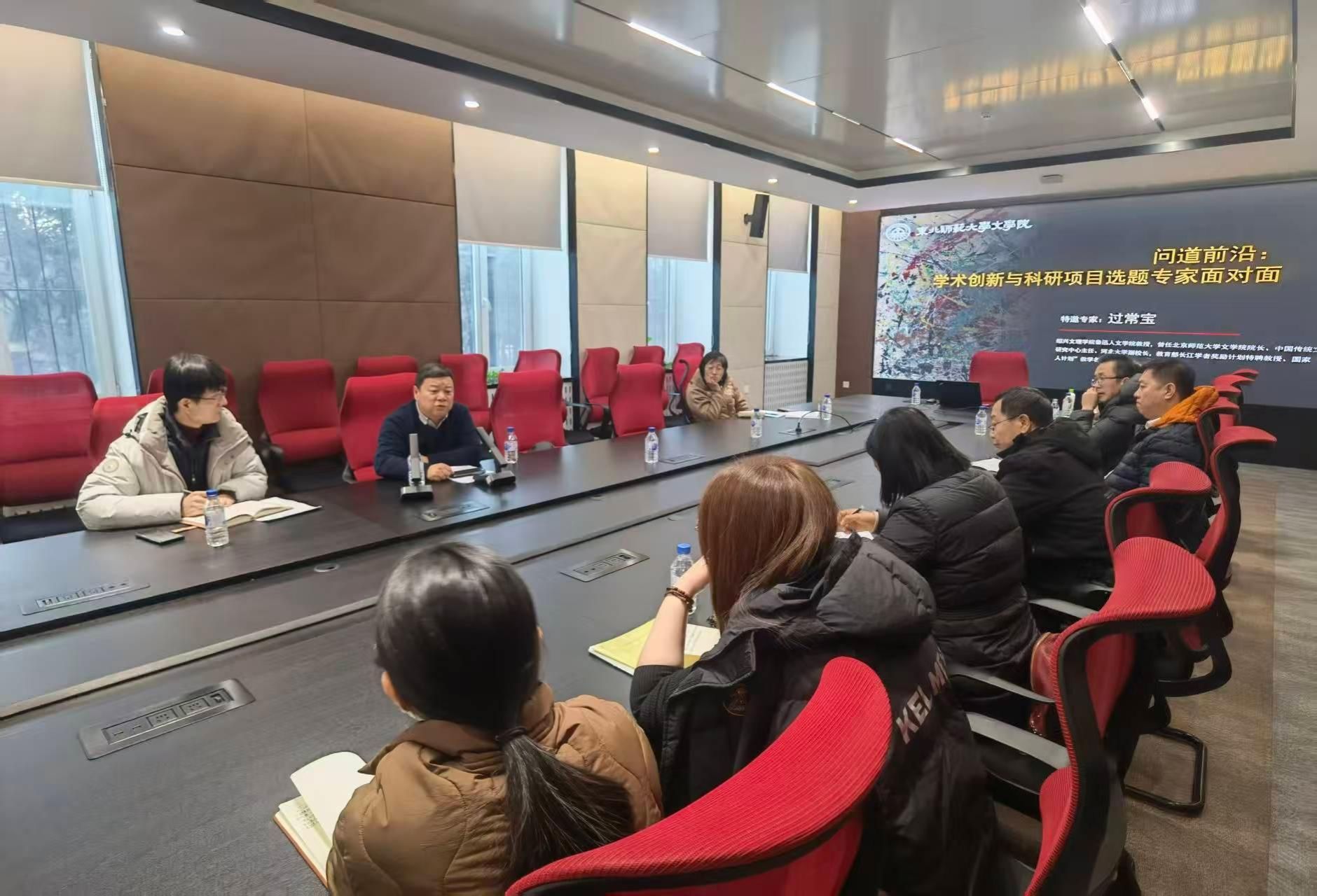 为精准推进2026年度国家社科基金项目申报选题与论证工作,进一步提升项目申报质量,近日,文学院成功举办“问道前沿:学术创新与科研项目选题专家面对面”第4场专题活动。活动特邀绍兴文理学院过常宝教授,就课题选题凝练、申报项目论证等关键议题,与学院教师展开深入交流与研讨。本次活动由副院长赵强教授主持,学院20余位教师参与。过常宝教授为绍兴文理学院鲁迅人文学院教授,曾任北京师范大学文学院院长、中国传统文化研究中心主任、...