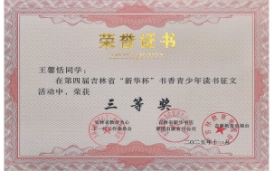 王馨恬、王姿桥、张鑫怡三位同学荣获三等奖。