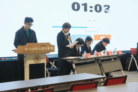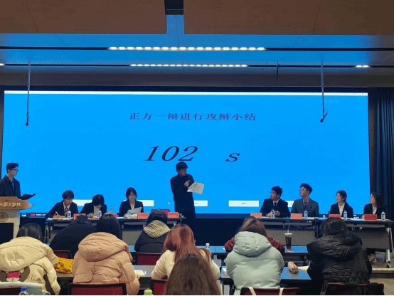 比赛伊始,正反双方依次进行了风采展示。普通2班的悠扬歌声诠释经典温度,公费师范3班的深情朗诵激荡思想回响.在歌声与诗句交织的舞台上,思辨的序幕缓缓拉开,也为随后的激烈交锋注入了青春的底色。