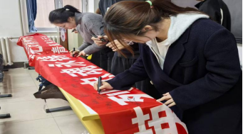 宣誓结束后,大家依次在横幅上签名,以寄托对杨公骥先生、孙常叙先生的追思与敬意。最后,由学生代表依次向两位先生雕像敬献花束,以表达对先生的深切缅怀与诚挚追念。